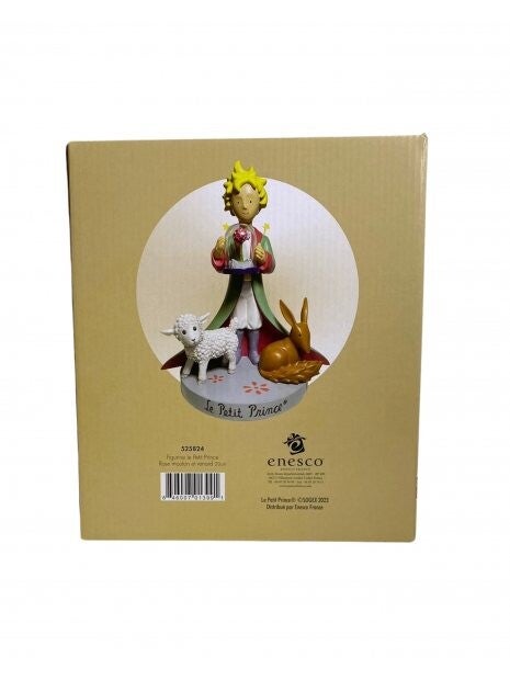 Cette figurine mettant en scène Le Petit Prince, accompagné de ses fidèles compagnons, le renard et le charmant mouton, est ornée d'une inscription gravée « Le Petit Prince » sur son socle. Elle est minutieusement sculptée en résine et peinte à la main.